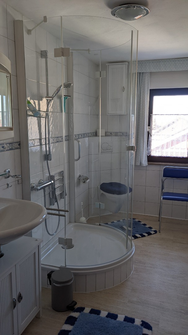 Das Bad mit Dusche und WC befindet sich ebenso im Obergeschoß der Ferienwohnung.