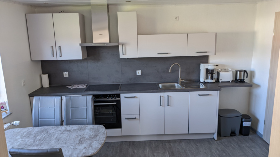 Die Küche ist vollständig eingerichtet und verfügt über sämtliche Haushaltsgeräte. Elektroherd mit Heißluft, Geschirrspüler, Kaffeemaschine, Wasserkocher, Toaster, Eierkocher Mikrowelle und Mixer. Kinderhochstuhl vorhanden.