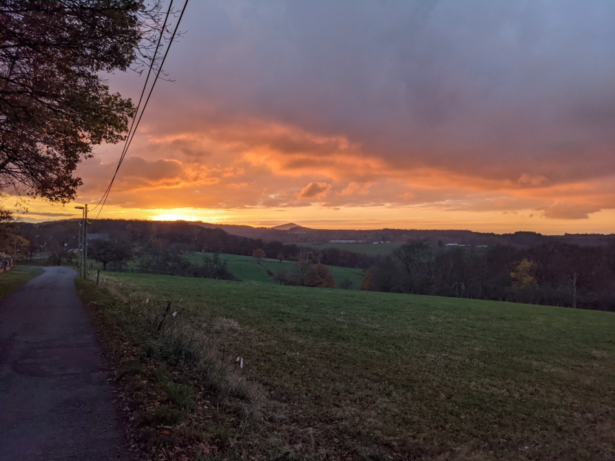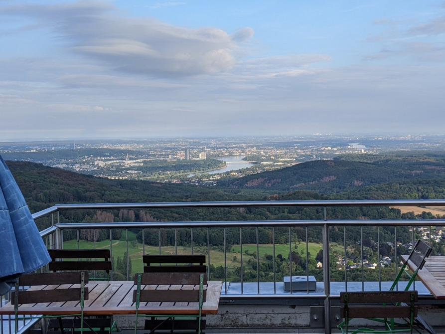 Das Foto zeigt einen schönen Ausblick auf das Siebengebirge: der Gipfel in der Mitte ist der Ölberg.