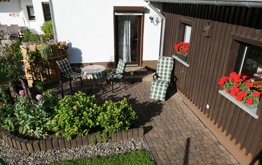 Für die Terasse stehen Sitzmöbel zur Verfügung..