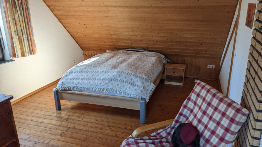 Im Dachgeschoß liegt das dritte Schlafzimmer mit Doppelbett (140 x 200)